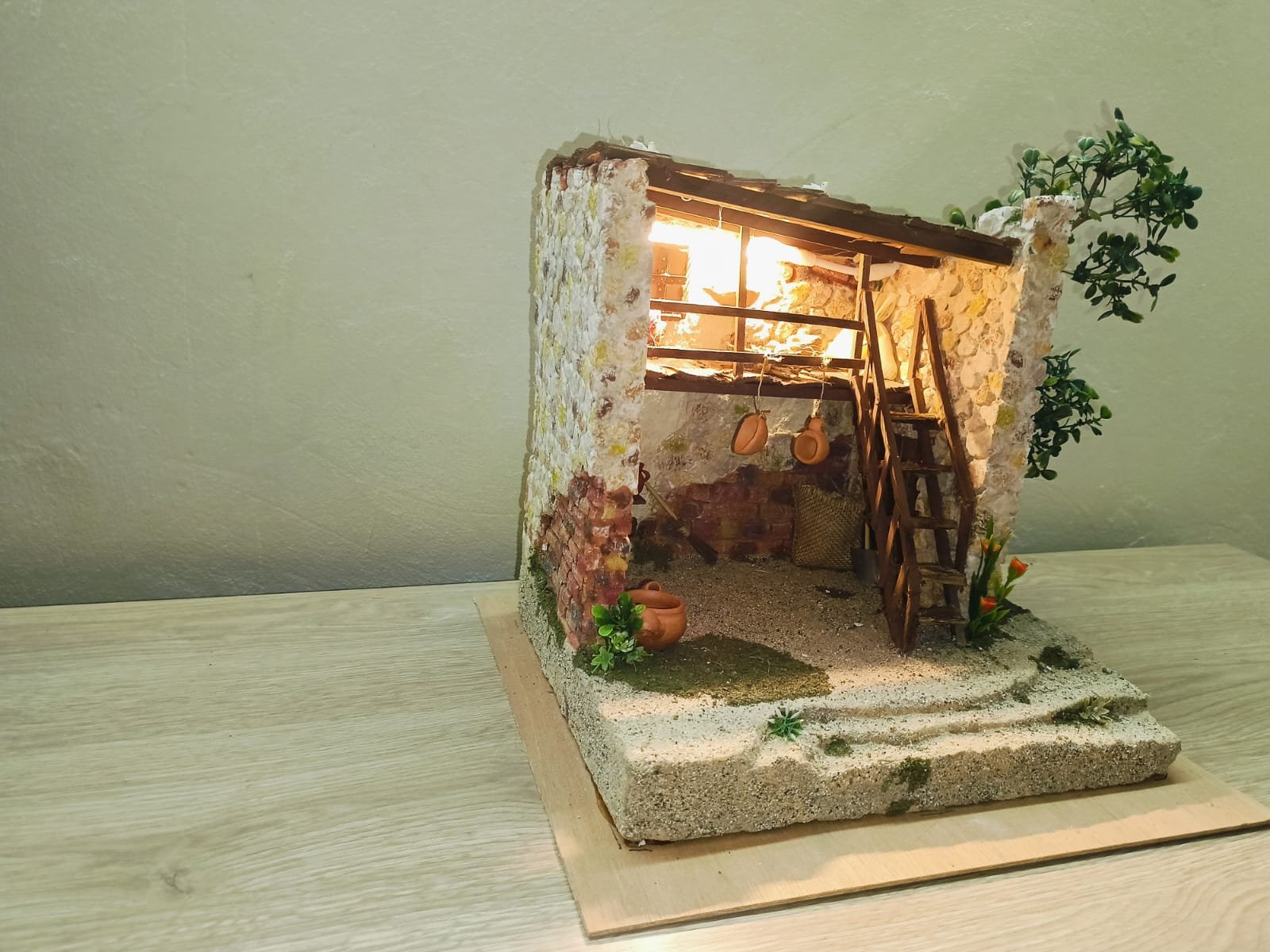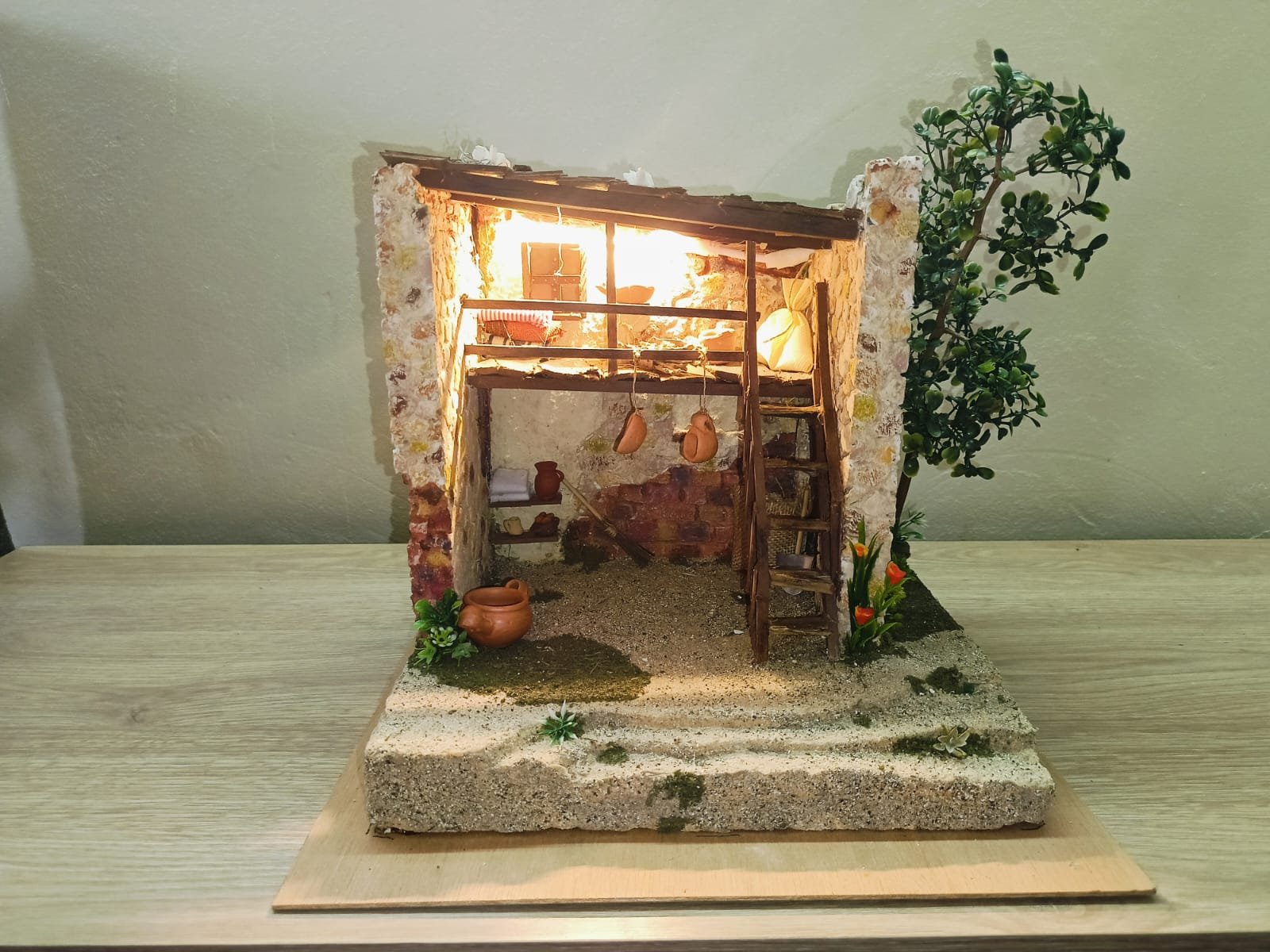 Un rincón navideño lleno de encanto. Con su desván de madera, paredes rústicas y pequeños detalles que enamoran, este pesebre ilumina cualquier Belén con su calidez y realismo. Simplemente precioso para darle un toque especial a tu Navidad.